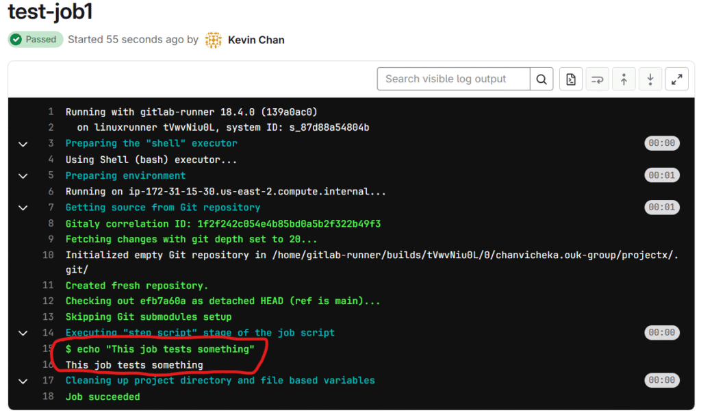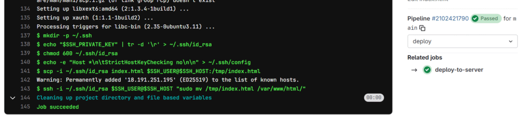 We can check our ci/cd pipeline jobs log as seen above and we saw that our script were executed successfully.