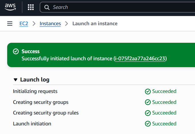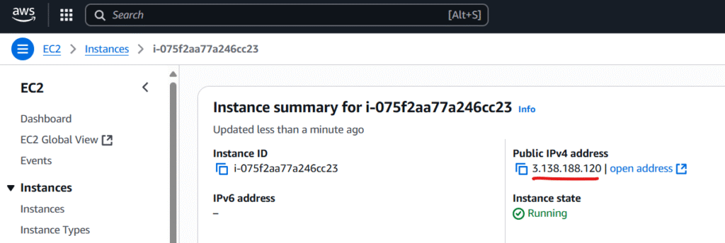 Ok it launched successfully. Then click on its instance name guid as seen above “i-075f2…”
