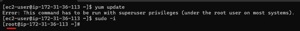 but we do not have the privilege to do it so we will have to elevate ourself to root with following command sudo -i