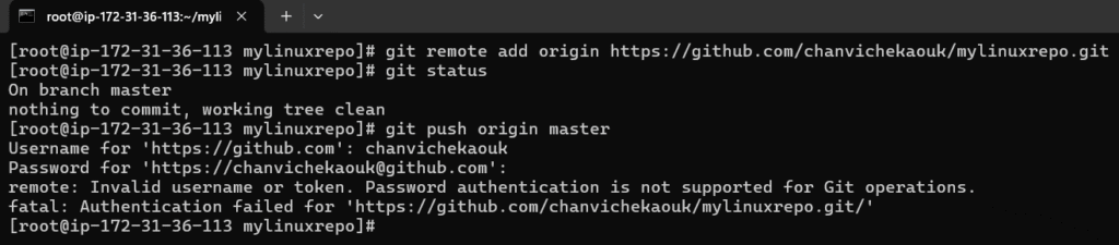 Note, also authentication in linux with username, password would not work and we would have to use personal access token.