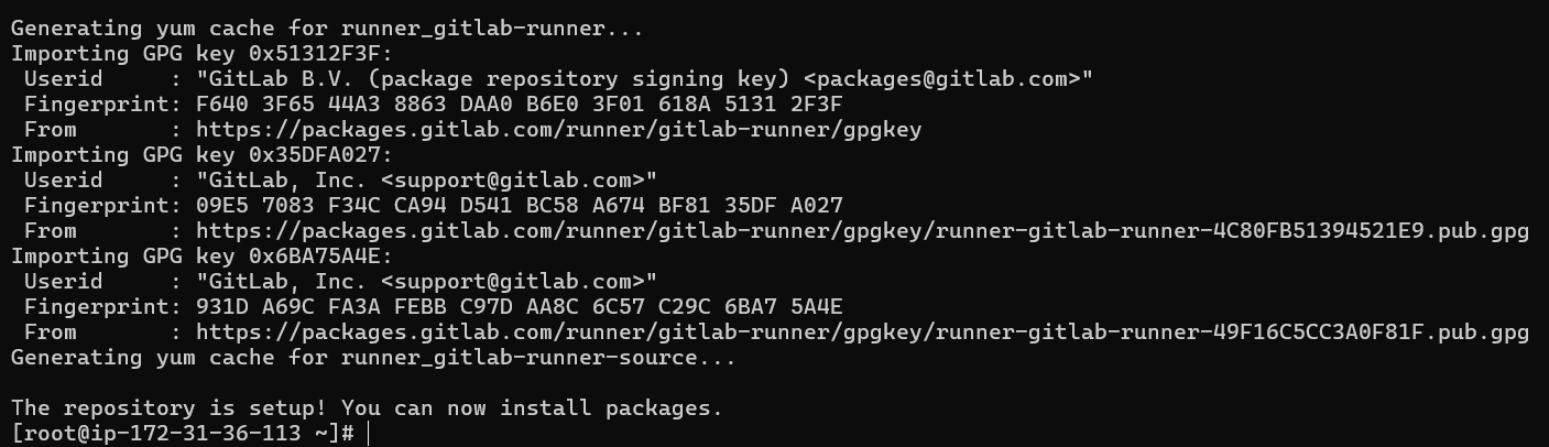 after the piped command we should see this which mean our gitlab repo is added to our amazon linux distro repos: