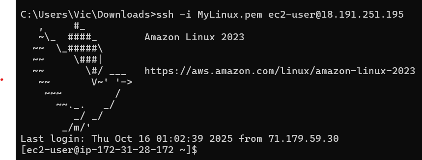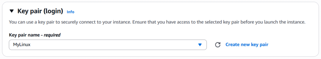 Note down the ip address since we are going to connect to it using our saved private key. we will use our private key “MyLinux.pem” to connect to it which matched with its public key at Amazon AWS server.